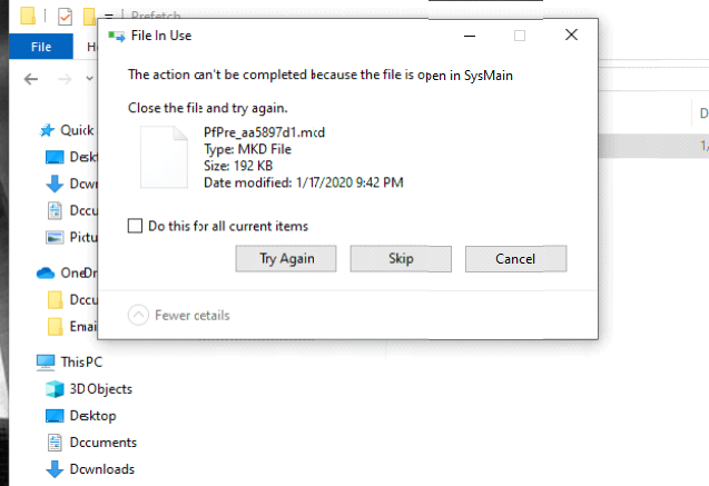 checkbox if you're presented with a “File In Use” or a “Folder In